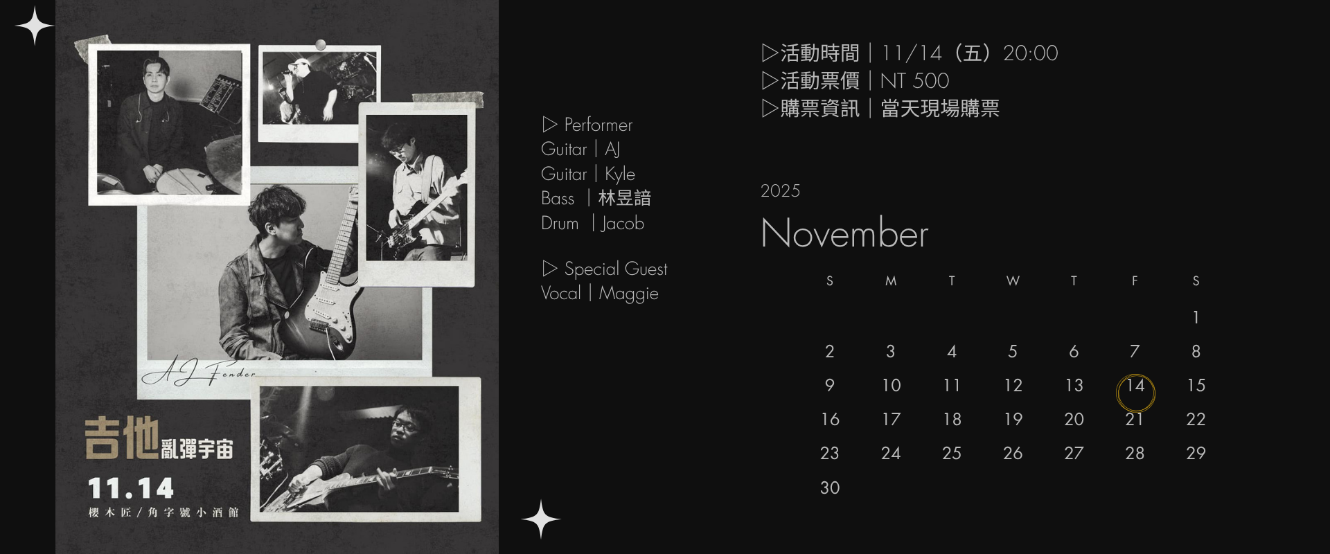 ▷演出地點|櫻木匠/角字號小酒館